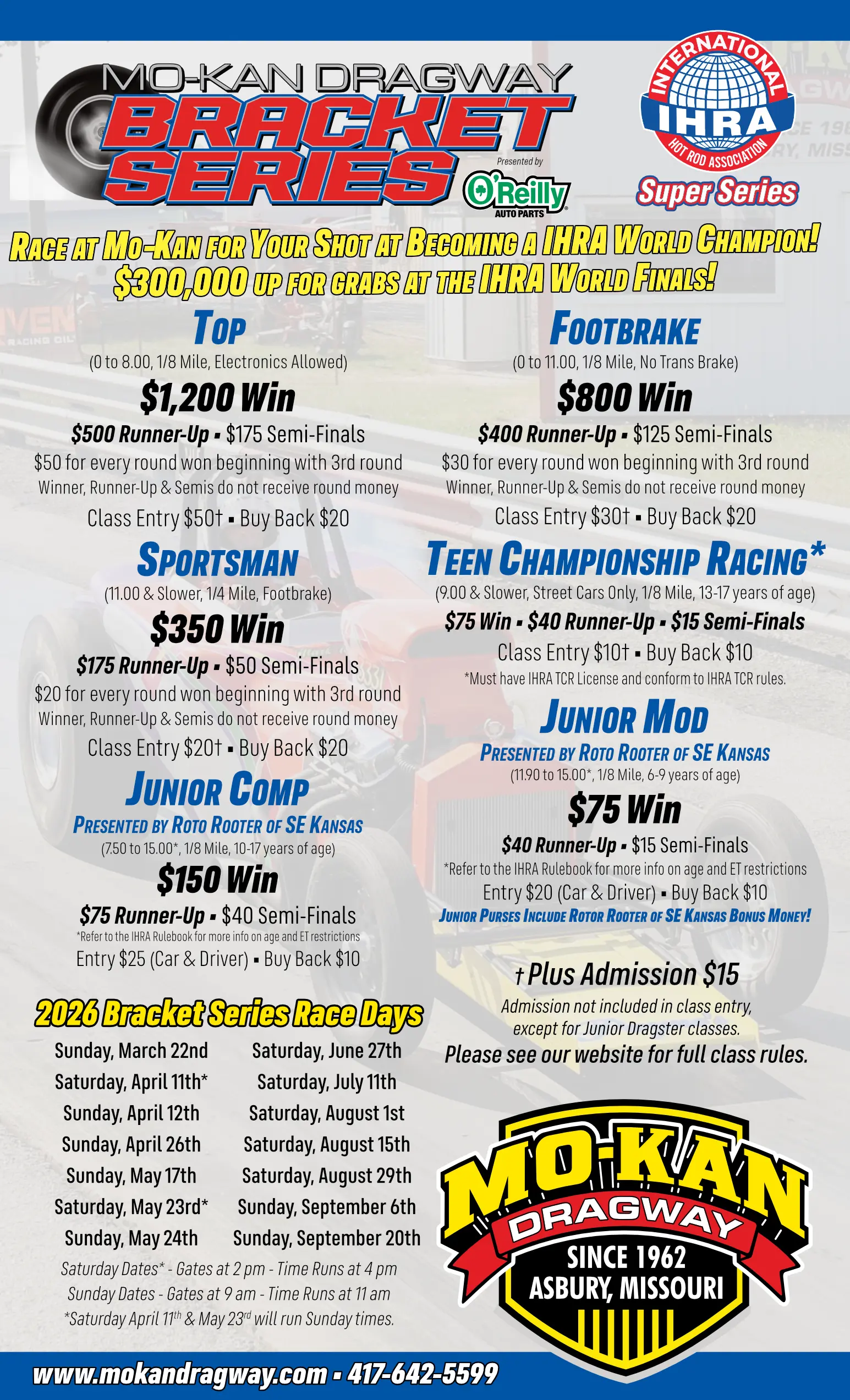 Race at Mo-Kan Dragway for your shot at becoming a IHRA World Champion!